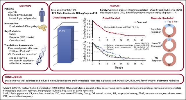 Research results above show that on patients for whom other treatments have not worked, and who have the same mutation (IDH2) that Kim has, the drug Enasidenib results in an overall survival (OS) of 6.5 months. This compares to about an OS of 15 months with the current treatment.