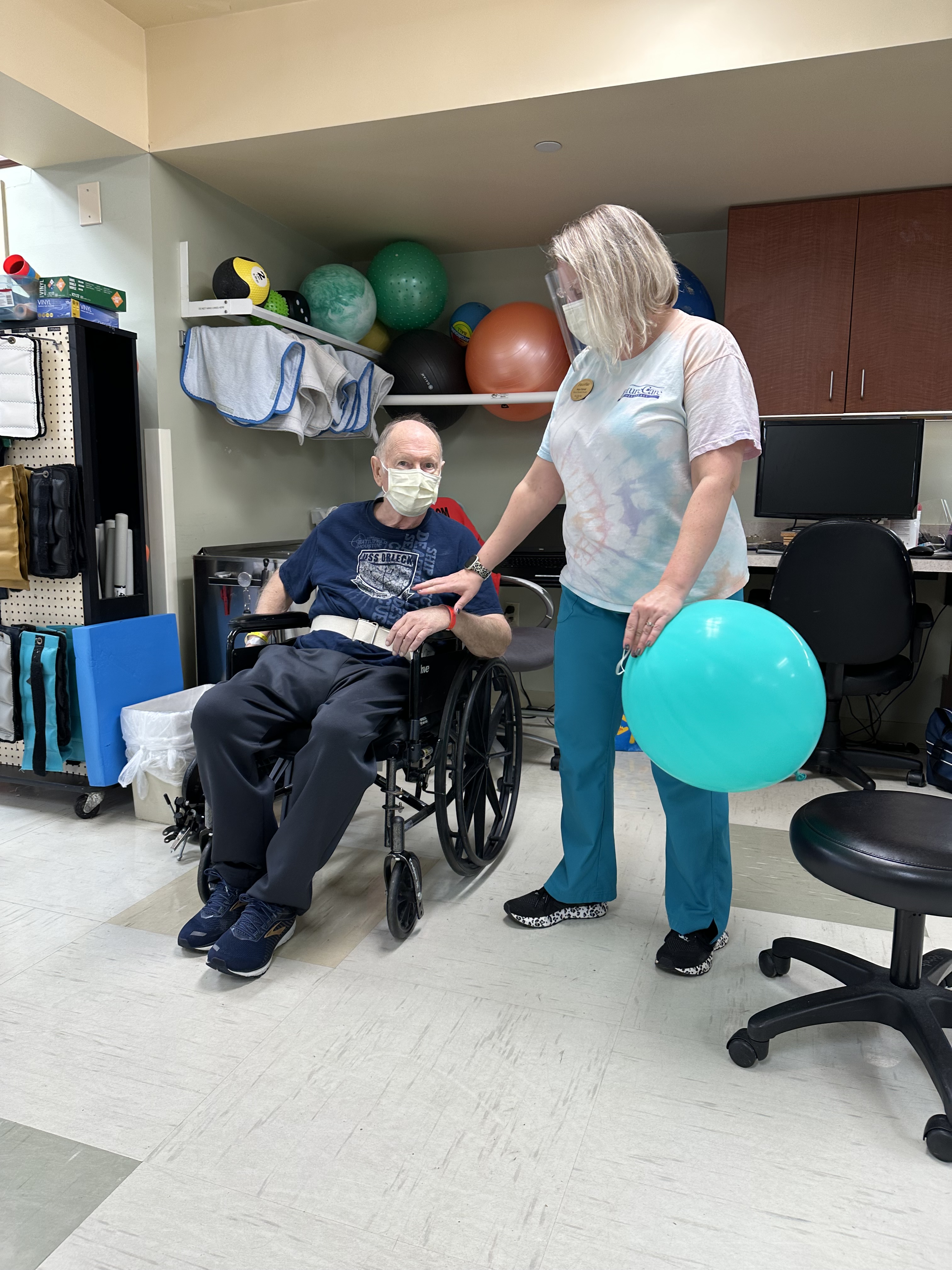At the facility’s gym receiving physical therapy