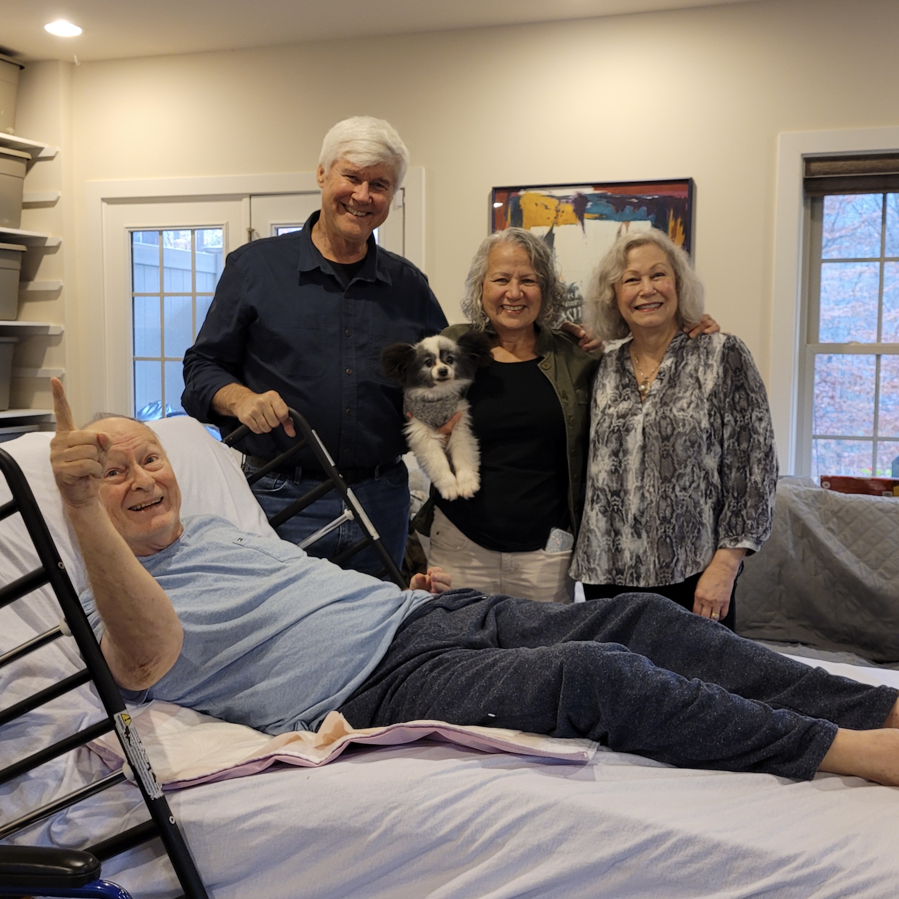 Our dear old neighbors Tip & Marsha who brought cheer with wonderful memories from the past; missing are pictures of dear friends Julie, who bravely stayed with Kim for 3 hours while I went to the gym to decompress; and Cindy who was also brave to try to stroll Kim in his wheelchair chair around our neighborhood ❤️